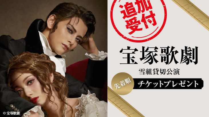 チケットの受付は終了いたしました。 ご応募ありがとうございました。 “ダンディズムの祖”と云われるボー・ブランメル。美貌とファッション・センスでイギリス階級社会を駆け上がった男の、栄光と挫折を描くミュージカル・ロマン。 実力派の歌・芝居・ダンスの職人集団として、完成度の高い舞台を作り上げ、所作の美しさや迫力が魅力の宝塚雪組。今回特別に追加チケットのご用意ができました! 公演概要 宝塚歌劇 雪組「ボ...