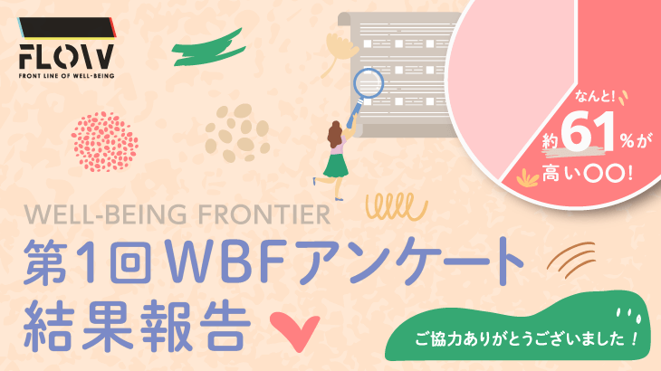第1回 WBFアンケート結果報告 皆さん、こんにちは! WELL-BEING FRONTIER(WBF)推進チーム「FLOW」です。 第1回 WELL-BEING FRONTIERアンケートでは多くの方にご協力いただき、ありがとうございました。 今回のアンケートは、桜十字グループで働く皆さんの『ウェルビーイング』に対する意識やビジョンについてどのように感じているか、また何を期待するかを把握する...