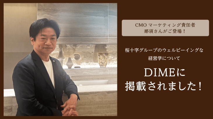仕事や暮らしに役立てる情報誌のDIMEにて、桜十字グループCMO那須さんによるインタビューが全2回にわたって掲載されました。創業20年で売上20倍の成長を支える「ウェルビーイング経営」の思想と実践、そして迎える超高齢社会へのロードマップを語る内容です。 ぜひ、ご覧ください! ▼参考記事はこちら 前編を読む(2025年8月20日〈経営の起点〉 後編を読む(2025年8月21日〈未来と展望〉
