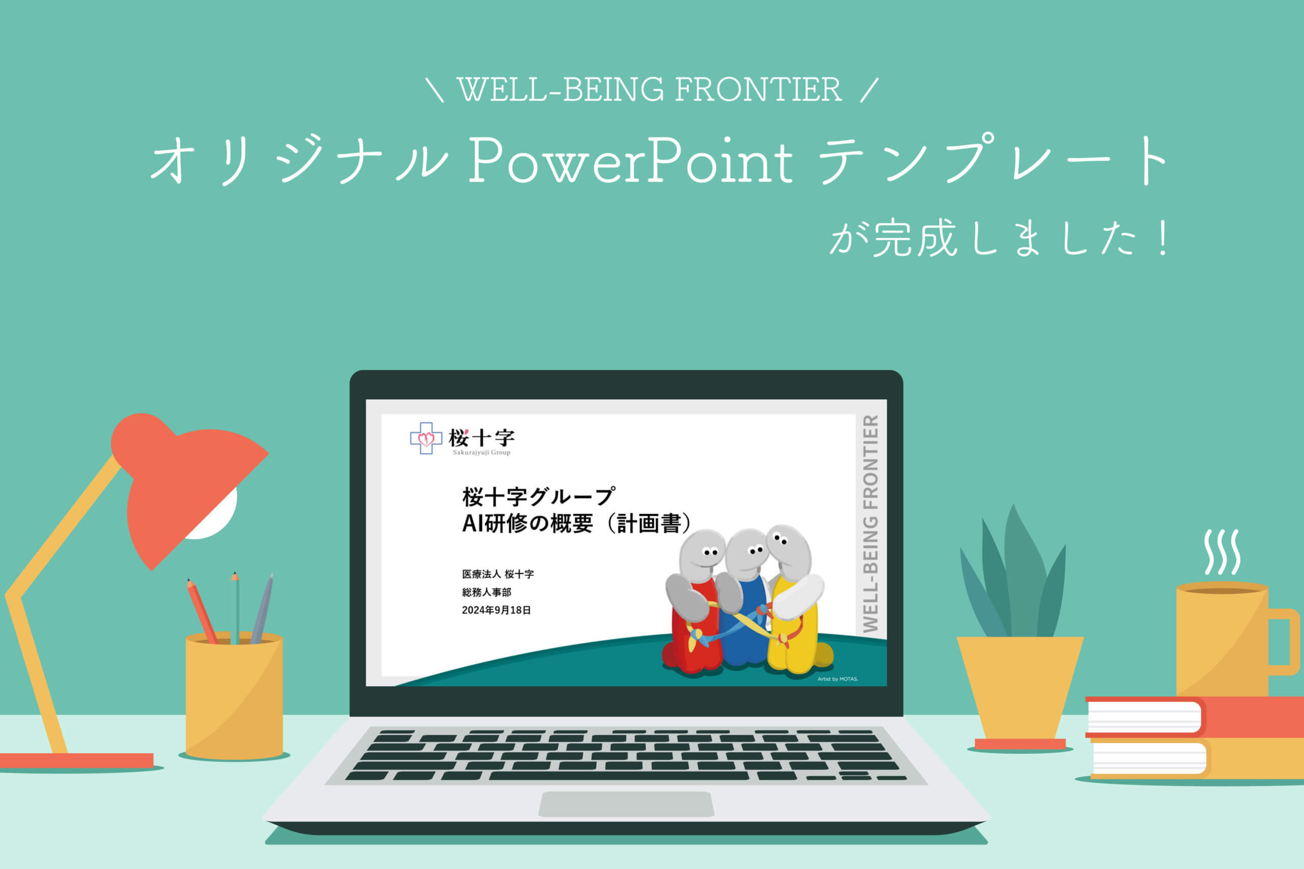このたび桜十字の新スローガン『WELL-BEING FRONTIER(ウェルビーイング・フロンティア)』のさらなる浸透を目指し、オリジナルデザインのPowerPointテンプレートを制作いたしました。
