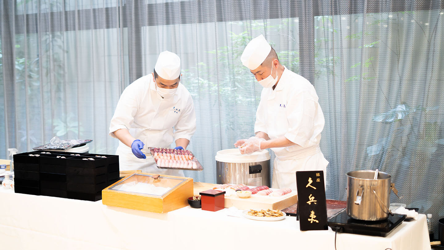 お迎えしたのは、創業90余年を誇る名店「銀座 久兵衛」。今回は職人が目の前で握る “出張寿司” という贅沢なスタイルでご提供しました。