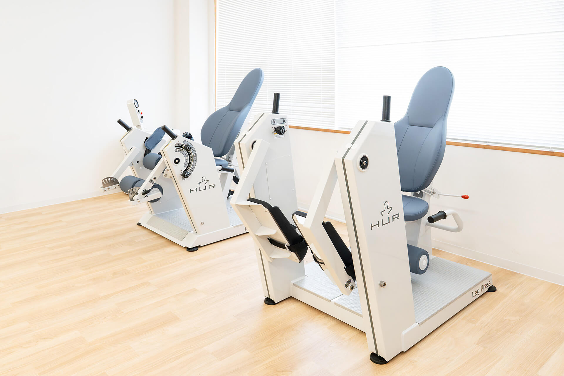 CPX検査後のリハビリでは、エルゴメーターでの有酸素運動とトレーニングマシン等によるレジスタンストレーニングを実施します。この度リハビートでは、高齢者や心疾患のある方でも安全に使える設計が世界中で評価されている、空圧式筋力トレーニングマシン「HUR(フー)」を導入しました。身体機能の回復を支えながら、再発予防や生活の質の向上をめざすトレーニングに適しており、心臓への負担に配慮しながら、日常生活に必要な能力の回復をサポートします。