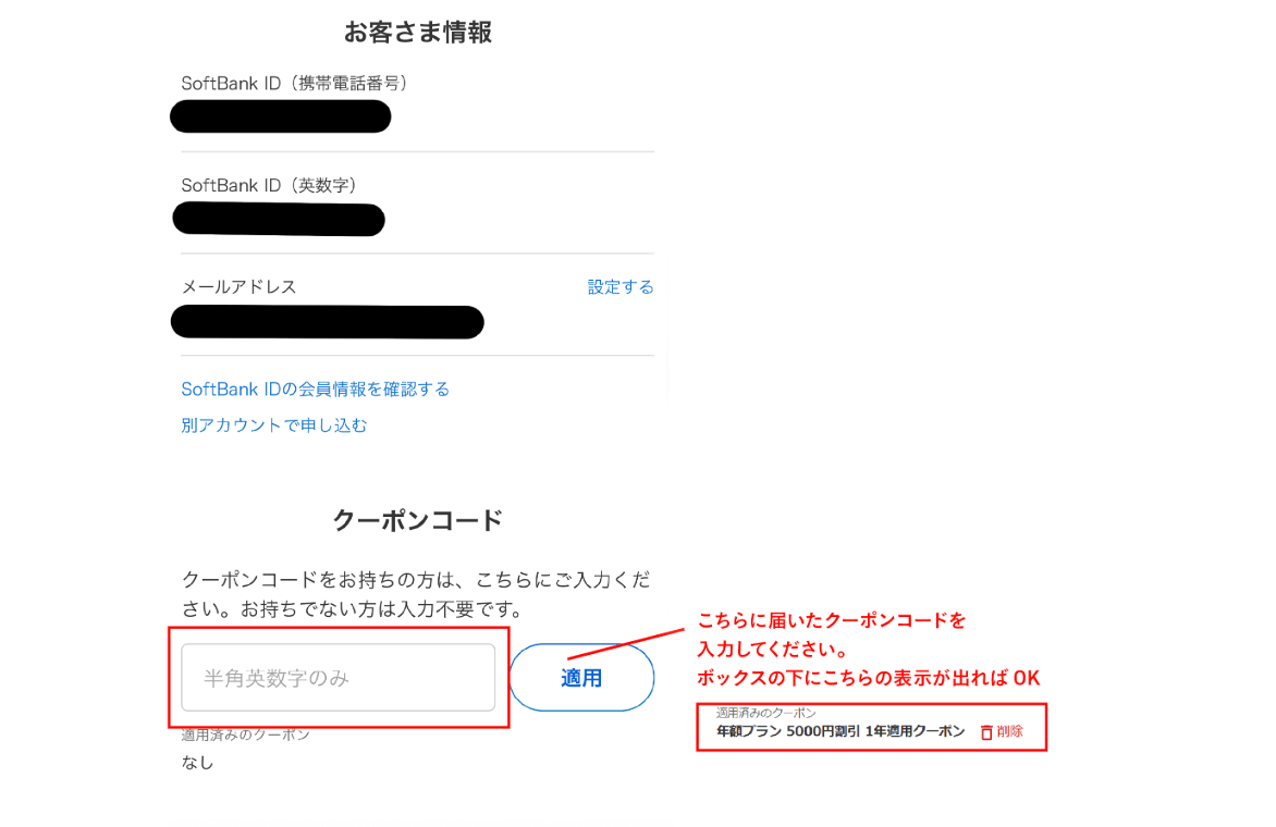 ※サービス加入後に割引クーポンコードを適用することができないためご注意ください。