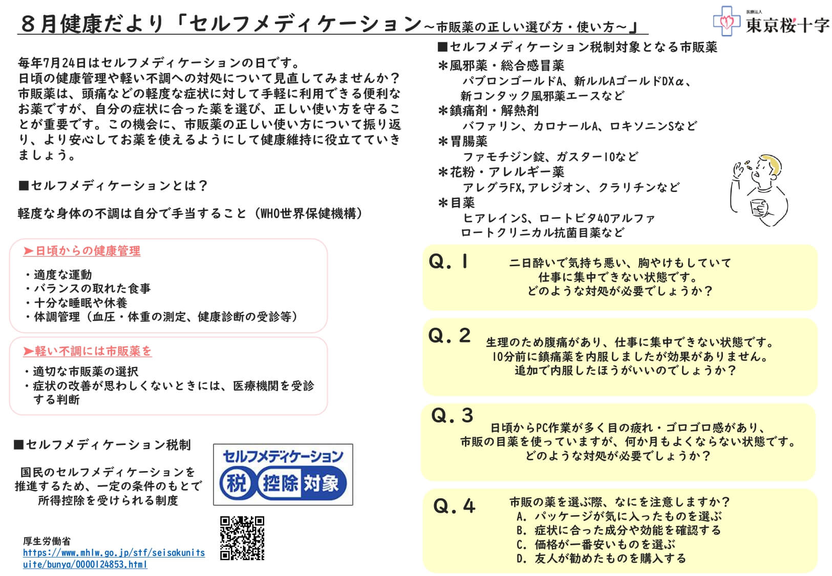 健康だより8月号のテーマは、【セルフメディケーション~市販薬の正しい選び方・使い方】です。