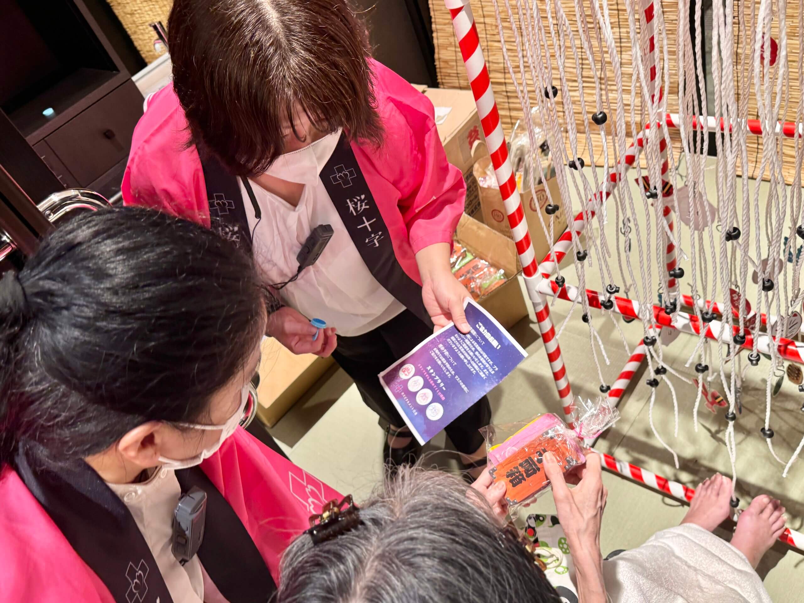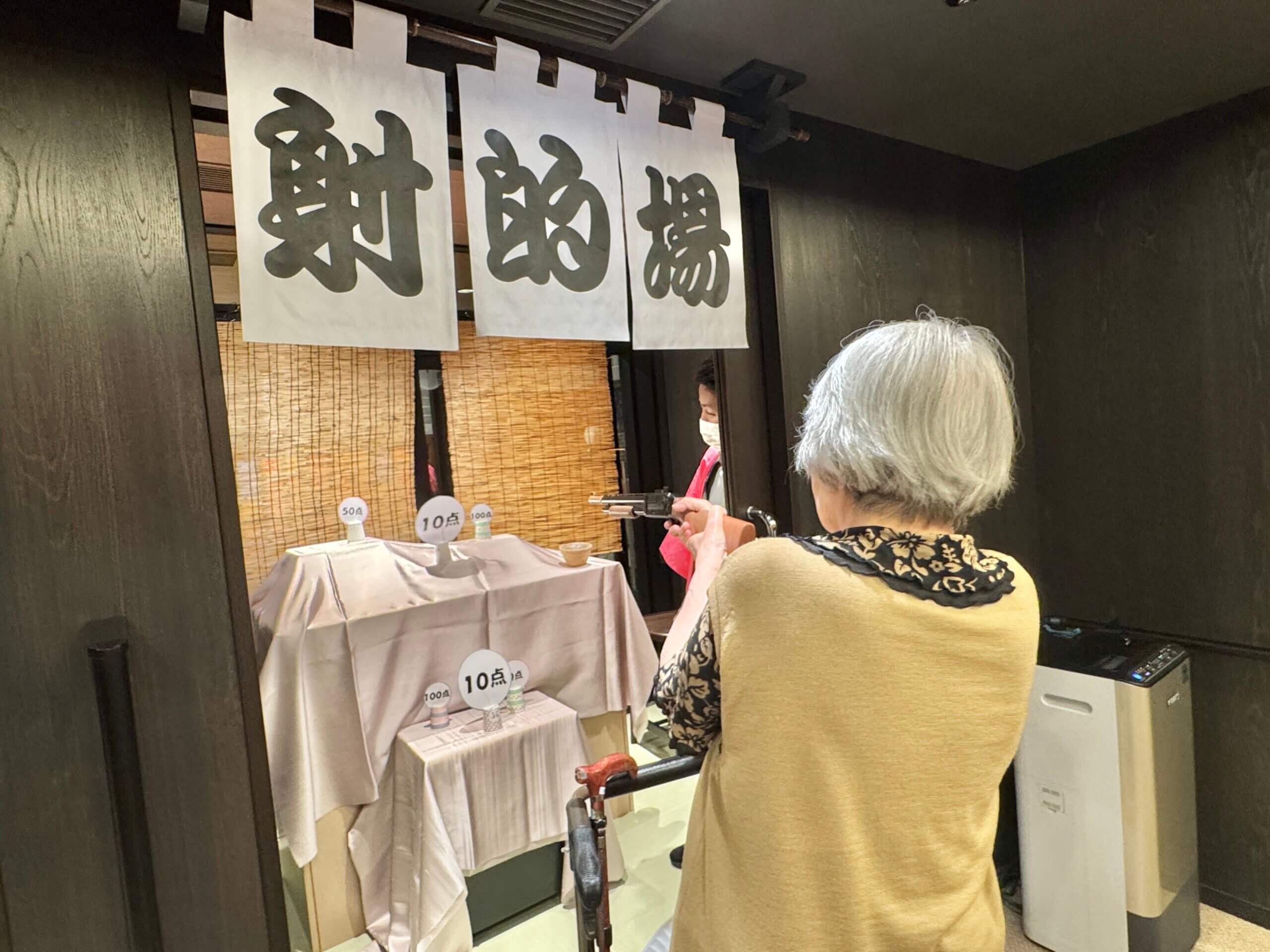 4つのゲームを順番に周り、スタンプを集めると景品がもらえるというスタンプラリー形式で行われました。最初は「わなげ」からスタート。大きな数字に輪が入ると、お客さまと一緒に職員からも歓声が上がります。続いて「的あて」「射的」「千本くじ」とゲームを進め、ひとつずつスタンプをゲット!スタンプを集め終えた方には、かわいい雑貨などのお楽しみ景品のプレゼントがありました✨「全部回れた!」と笑顔で景品を受け取られる姿に、職員の方も思わずにっこりする場面がたくさん見られました。