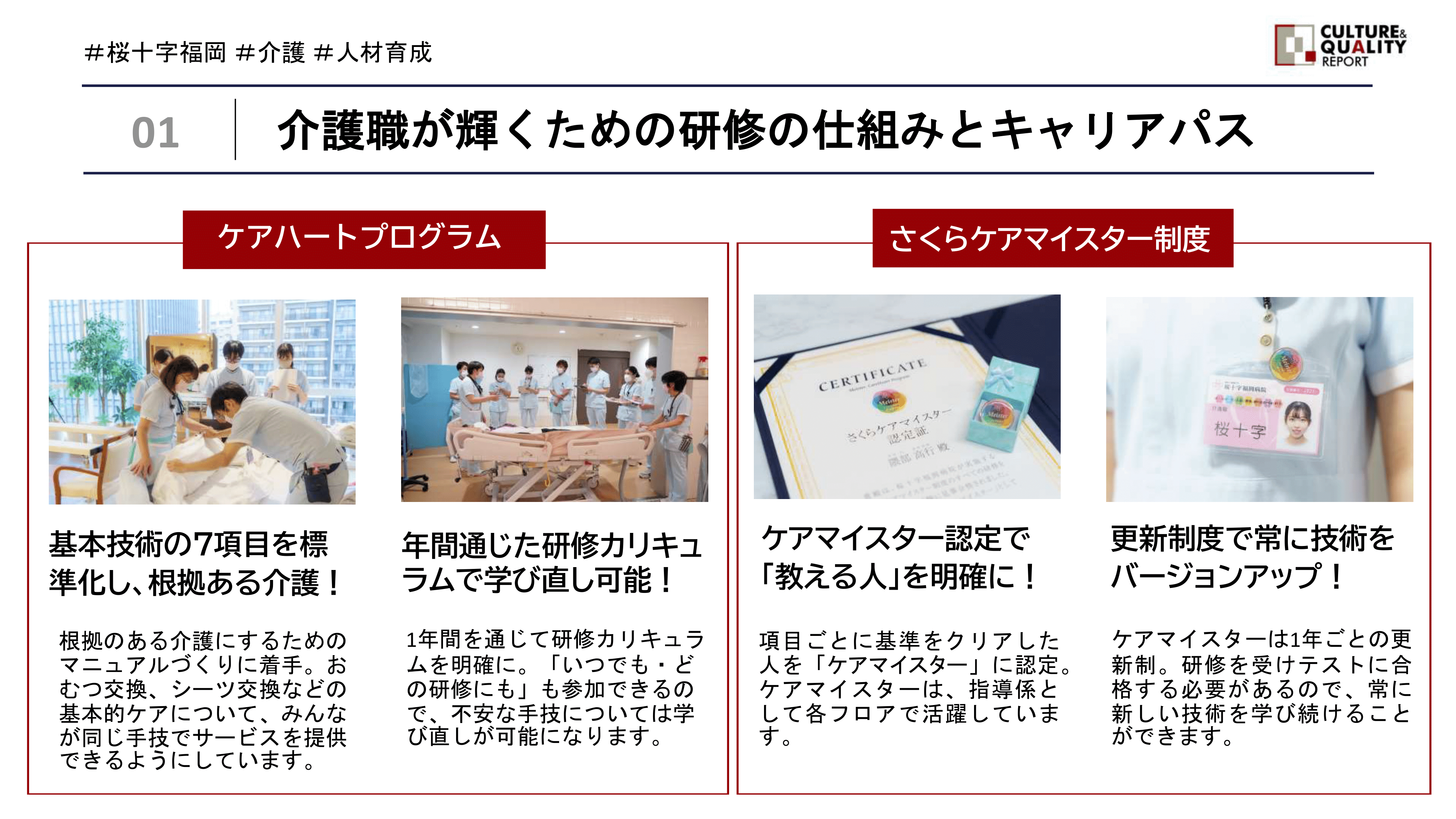 先日ご紹介した、🌸CQレポート🌸Vol.3-1「桜十字福岡病院の取り組み‐病棟編-」、🌸CQレポート🌸Vol.3-2「桜十字福岡病院の取り組み‐老健/デイケア/環境整備編-」に続き、第3弾として、人材育成編をレポート!