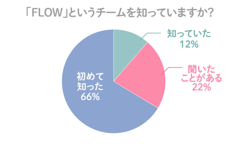 WBFの考え方を推進するために活動している「FLOW」の認知度については、66%の方が「この質問で初めて知った」と回答しています。今後の活動を通じて多くの方に知ってもらえるよう情報発信を続けていきます!