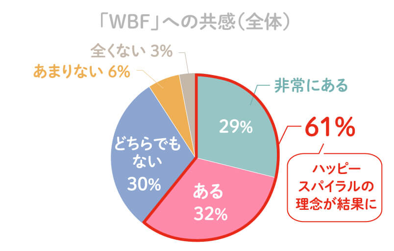 WBFの考え方「自分自身はもちろん、まわりの人たちのWell-beingも創出する開拓者(Frontier)になること」については61%が高い共感を示していました。