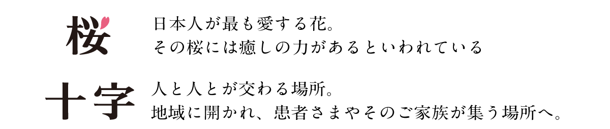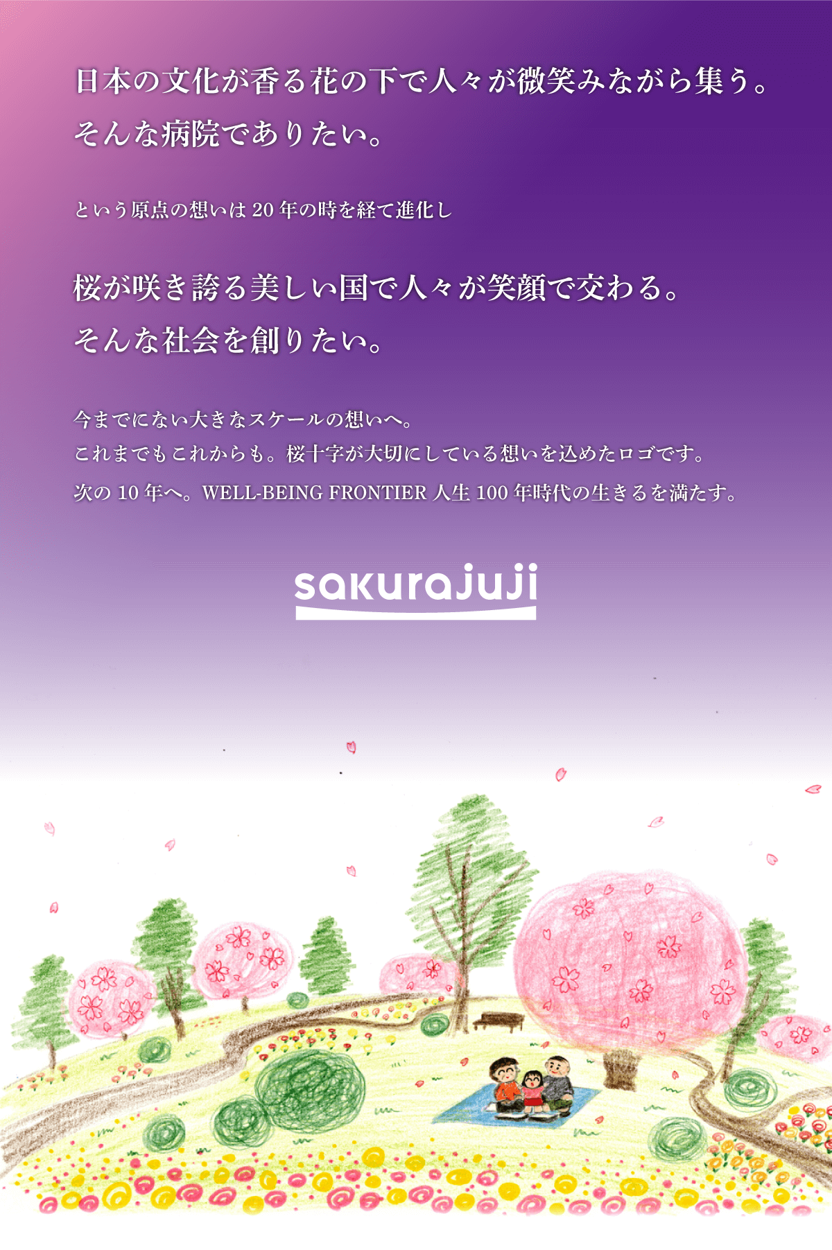 「からだを治す」ことに卓越した桜十字だからこそ、私たちは「こころ」や「つながり」の充足にまで手を差し伸べることができます。私たちの原点である病院という場は、「からだ」はもちろん、「こころ」、そして「人と人とのつながり」も、良い状態へと導くことができる特別な場所です。
