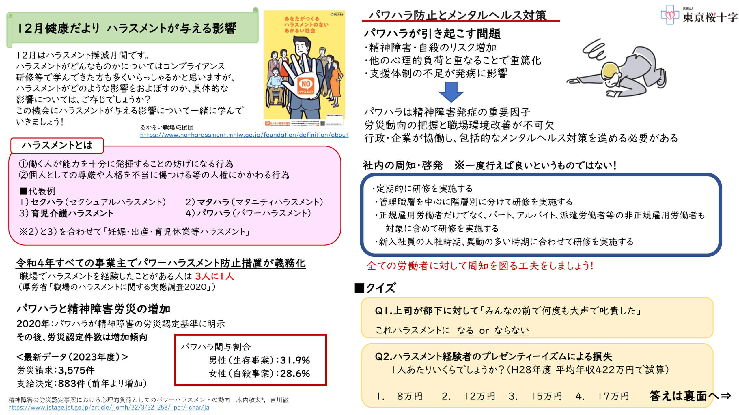 この機会に、ハラスメントが心や職場環境にどのような影響を与えるのか、一緒に考えていきましょう。