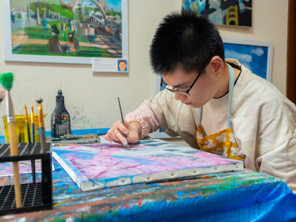 福祉と聞くと「お手伝い」を想像するかもしれません。しかし、アイムの日常はもっとエネルギッシュです。ご利用者さまが生み出したアートは、ある企業のオフィスを彩り、アート展では数々の賞も受賞しています。ここでは、ご利用者さまは「助けてもらう人」ではなく、価値を生み出す「一人のアーティスト」です。自分の表現が誰かを喜ばせているという実感が、人生を前向きに輝かせる大きな力になっています。