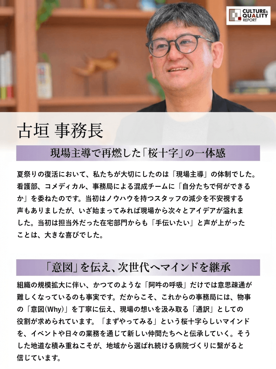 CQレポートVol.10「桜十字病院の進化改善‐ハッピースパイラルを回す4つの柱‐」